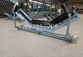 輸送帶在運(yùn)行中出現(xiàn)偏移時(shí),擋輥在輸送帶的邊緣進(jìn)行阻擋保護(hù),然后再傳遞受力進(jìn)行調(diào)整。